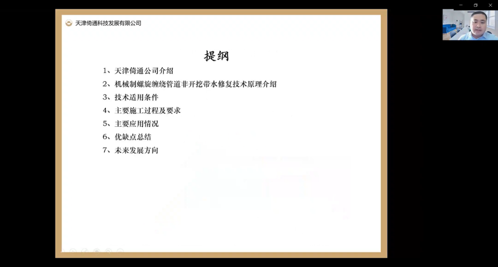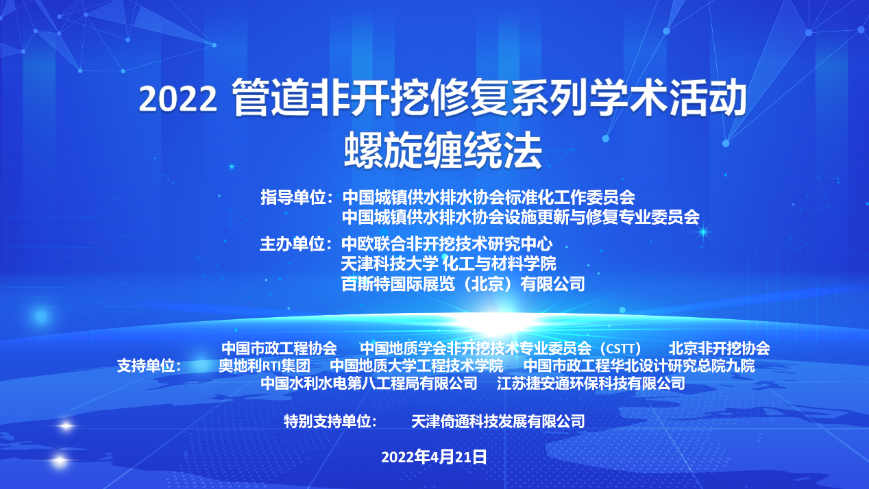 2022年4月21日,由中欧联合非开挖技术研究中心(CETT)螺旋缠绕法专题学术会议,会议以网络直播的方式召开,约有400名专家、学者和企业人员参会。会议邀请到天津倚通科技发展有限公司总经理王刚先生、天津科技大学科技处处长唐娜教授出席并致辞,CETT欧方主任奥地利RTI集团埃德蒙先生发来书面致辞。北京北排建设有限公司总工办主任陆学兴教授级高工,中国地质大学工程技术学院马孝春副教授,天津倚通科技发展有限公司副总经理赵志宾先生,中国水利水电第八工程局有限公司副总工程师田福文教授级高工,江苏捷安通环保科技有限公司总工王成全先生,中国市政工程华北设计研究总院第九设计院王阳副院长,天津科技大学化工与材料学院曾威副研究员,天津科技大学化工与材料学院周晓明副教授,天津科技大学化工与材料学院杨宗政教授等专家学者作大会报告。