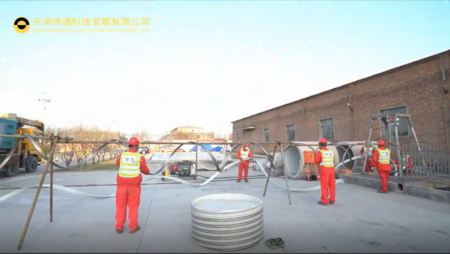 在午歇时间,由天津倚通科技发展有限公司带来技术展示:螺旋缠绕技术修复排水管道。