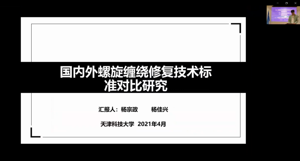 天津科技大学化工与材料学院杨宗政教授团队报告题目是《国内外螺旋缠绕修复技术标准对比研究》,介绍了适用于螺旋缠绕修复技术的国内外相关标准,分别对其结构形式、设计计算、施工方法和测试方法进行对比分析,并对目前正在编制的中国水协螺旋缠绕产品标准进行介绍。
