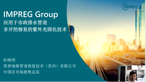 英普瑞格管道修复技术(苏州)有限公司销售总监杜晓明先生,分享了应用于市政排水管道非开挖修复的紫外光固化技术工程实际案例,对施工过程质量控制进行了详细分析,为光固化修复技术的高质量发展提供了有效参考。