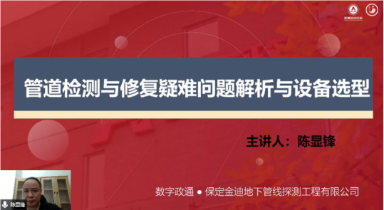 保定金迪地下管线探测工程有限公司修复事业部陈显峰总经理,解析了国内目前管道检测与修复的疑难问题以及技术短板,并对修复设备的选型方案给出了合理的建议,为业内同行未来进行实际工程施工提供了参考。