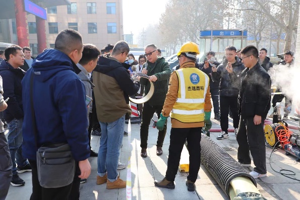 杰瑞高科(广东)有限公司总经理杜建勇,报告题目为“新型热塑材料在非开挖工程中的应用”,就热塑成型材料、热塑成型工程车、施工案例、热塑密封气囊等方面对热塑修复工艺进行介绍,通过生动的案例分析,向与会者展示了热塑技术应用效果,强调了其对非开挖工程的重要性以及对环境友好的优越性,为与会者全面解析了热塑修复工艺。