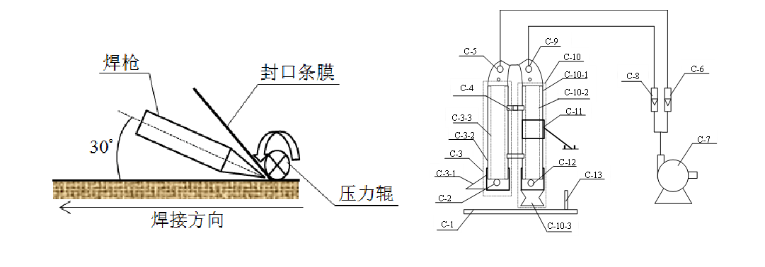 基于热风焊接原理,通过封口条膜层部分熔化、行进和冷压,与基材接缝进行有效粘接,实现软管内外接缝同步原位在线复合技术;