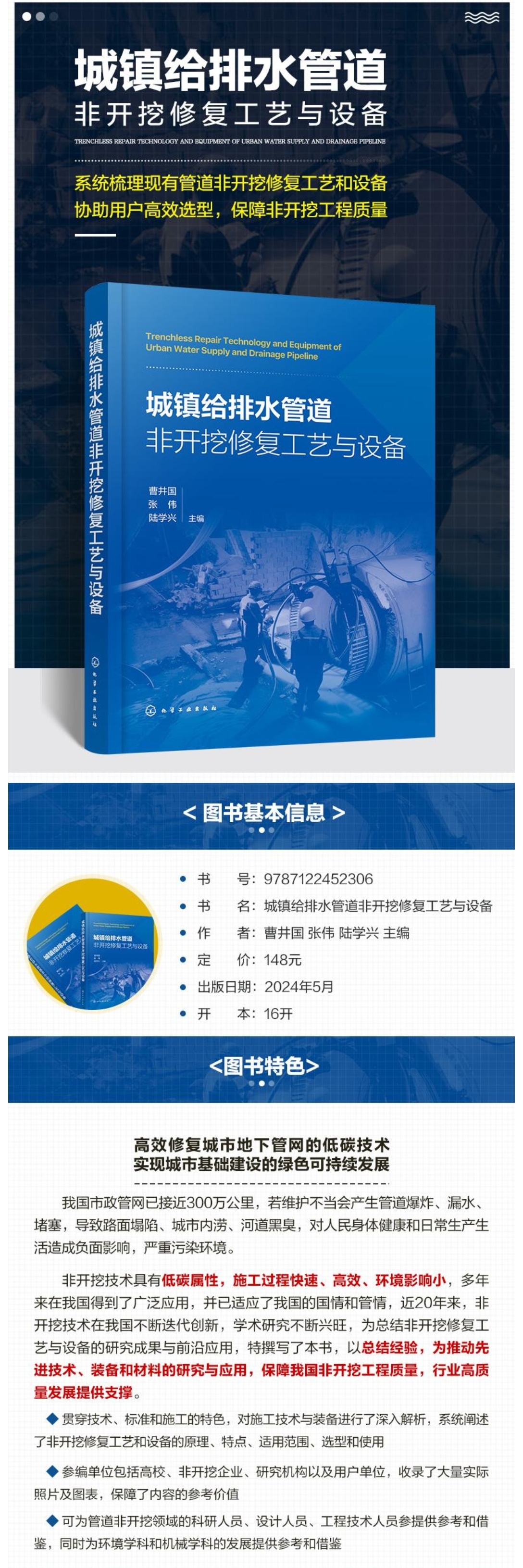专著|行业专著《城镇给排水管道非开挖修复工艺与设备》正式出版
