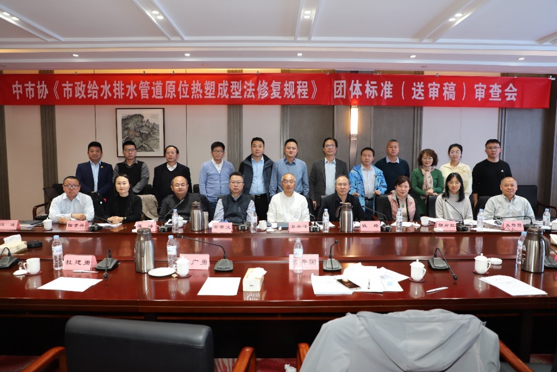 曹井国教授首先感谢各位审查专家和参编单位的支持,之后由编制组成员对《市政给水排水管道原位热塑成型法修复规程》团体标准进行汇报,简要介绍了标准编制的背景、标准编制过程、标准主要内容、与国内外标准对比及标准创新点,该项标准首次全面的对原位热塑成型修复所用材料力学性能、设备、施工进行规定。