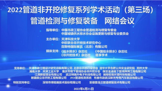 2022年6月21日,由天津科技大学组织召开了“管道非开挖修复系列学术活动-管道检测与修复装备学术会议”,因疫情原因,会议以网络的方式召开。